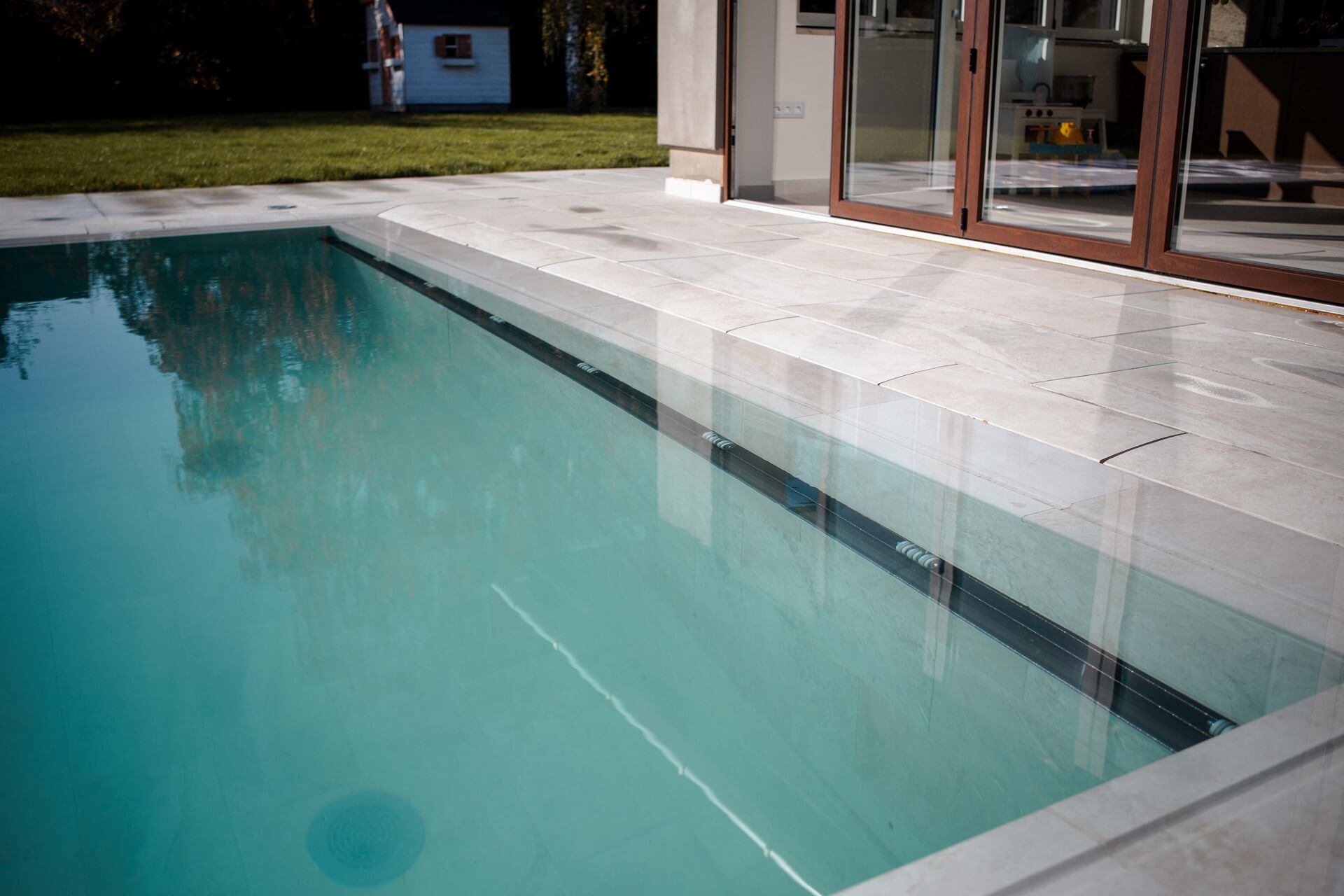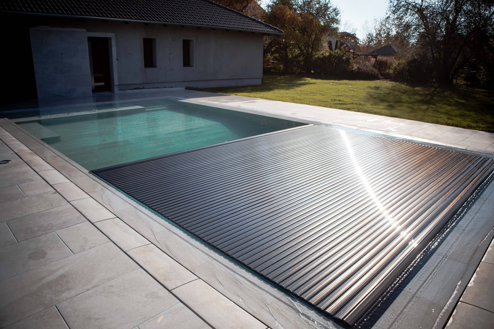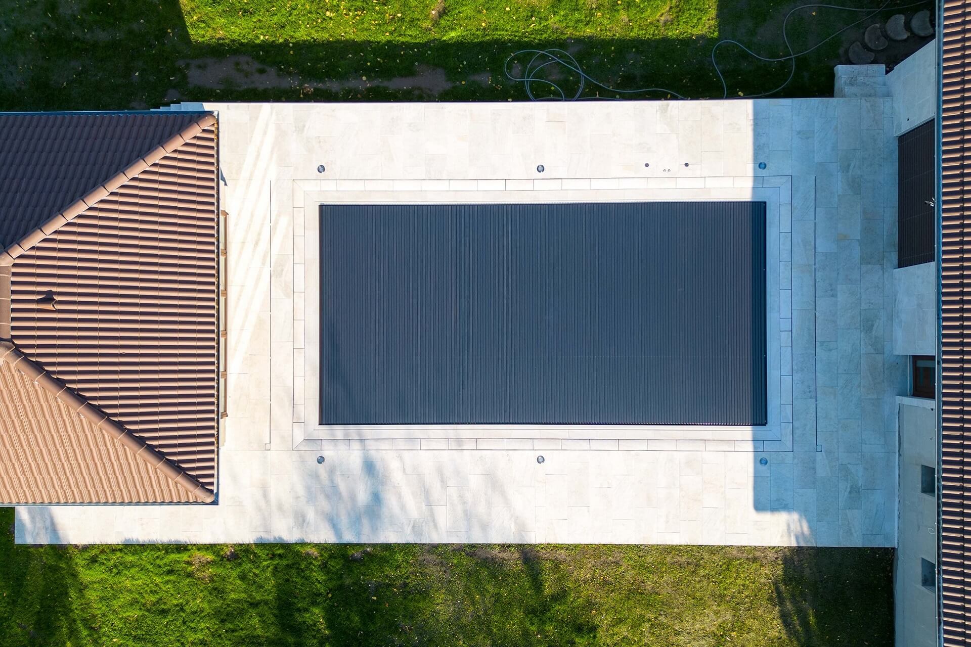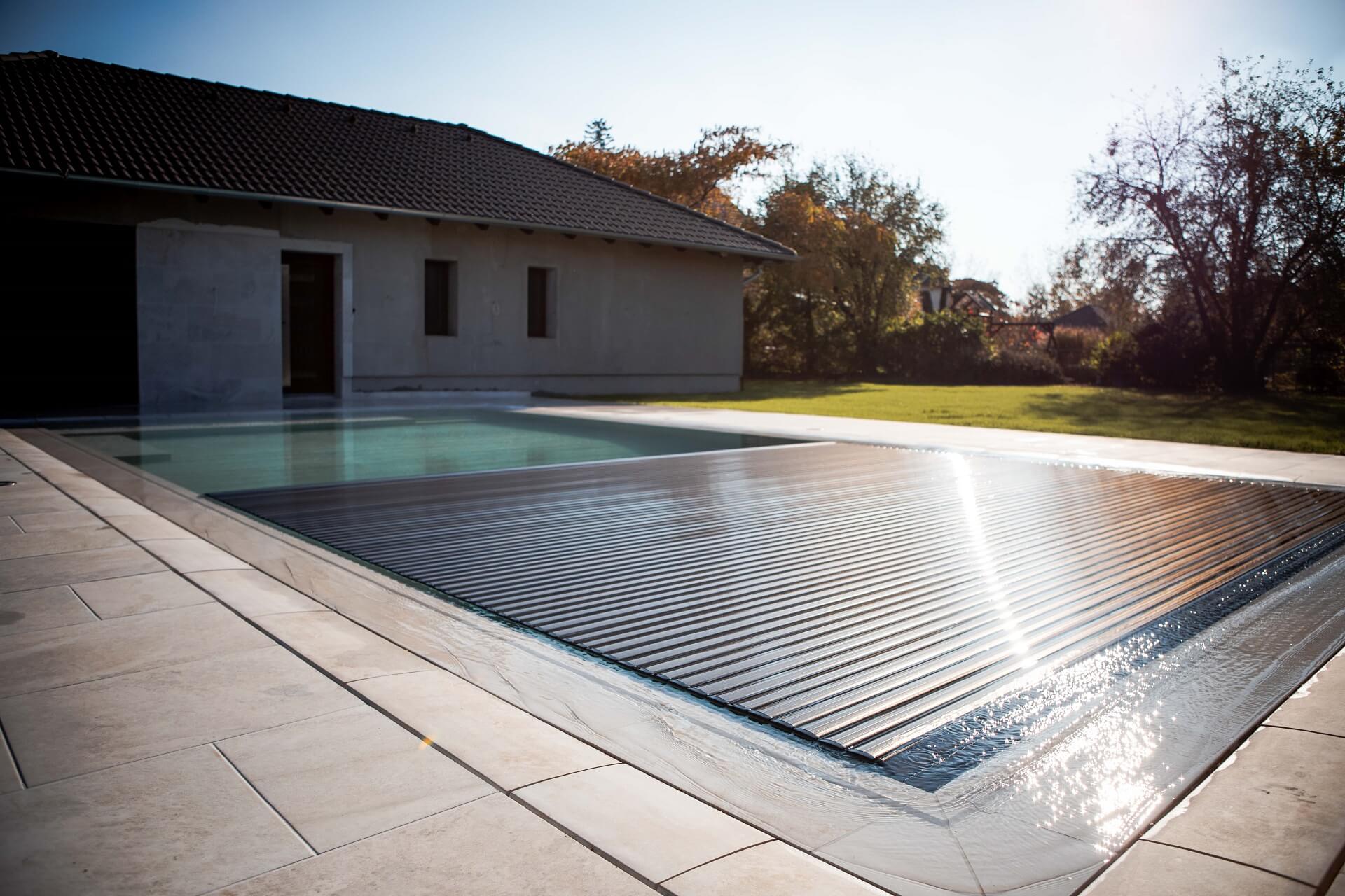 A rolós medencefedés tökéletesen siklik a víz felszínén. Nem emelkedik ki a síkból, tökéletesen illeszthető bármely környezetbe.