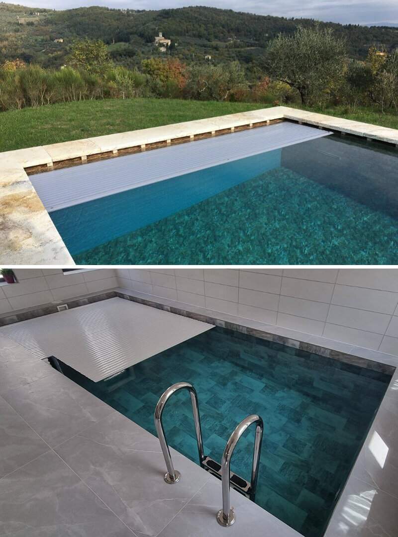 Exlusive Line rolós medencefedésünk lamellái a fenéklemezbe tekerednek fel, így abszolút nem vesznek el helyet a medencetérből. Szuper választás egy olyan helyre, ahol minden centiméter számít. Egyedi medence forma esetében is alkalmazható.